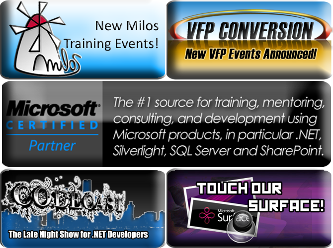 Events: Two Extensive Training Classes - .NET for VFP Developers & Converting VFP Applications to .NET - 2/1/2010.NET for VFP Developers - Beginner - 2/1/2010.NET for VFP Developers - Converting VFP Applications to .NET - 2/4/2010